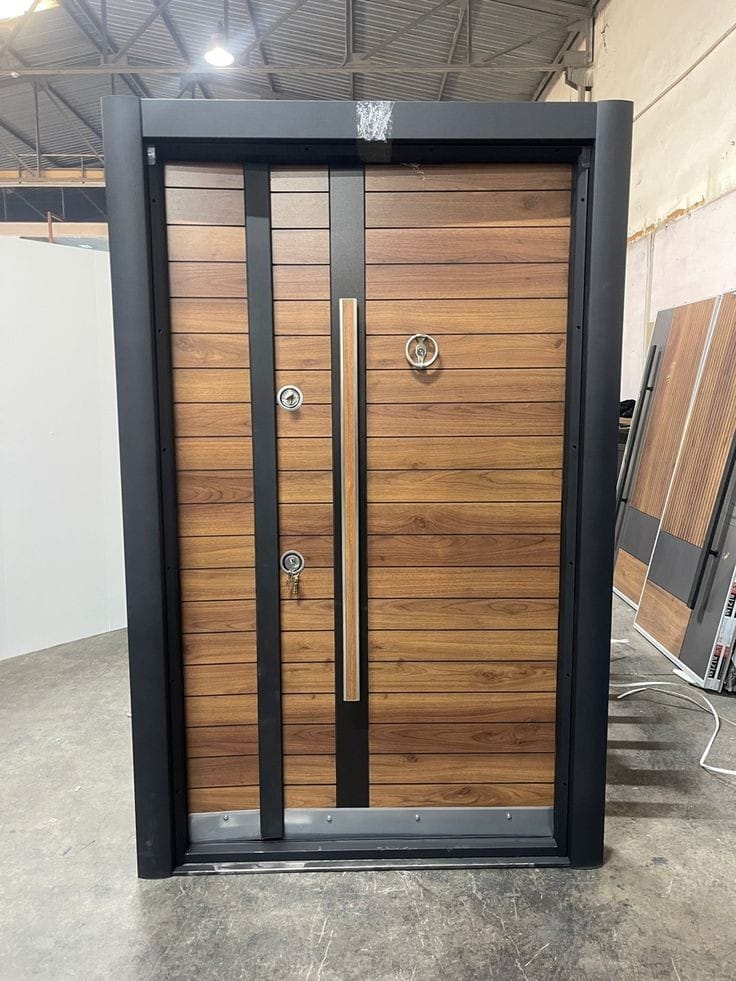 - أبواب حديد مصنوعة من الصلب: الخيار الأمثل لأماكن تتطلب أمانًا عاليًا، مع قدرة كبيرة على تحمل الظروف الجوية القاسية مثل الأمطار والرطوبة.
