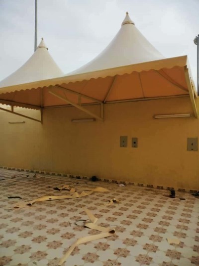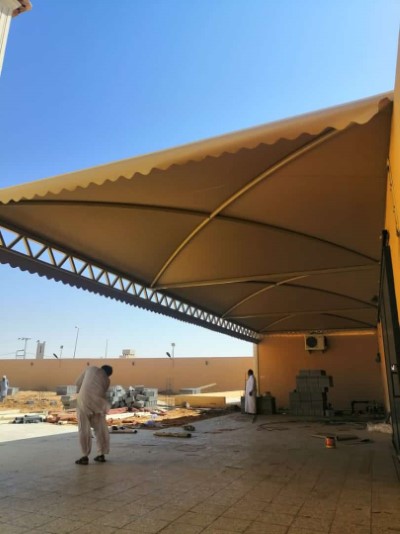 - يتم البدء في تركيب مظلات قماش عن طريق فريق من العمال مدرب وعلى كفاءة عالية وخبرة كبيرة .