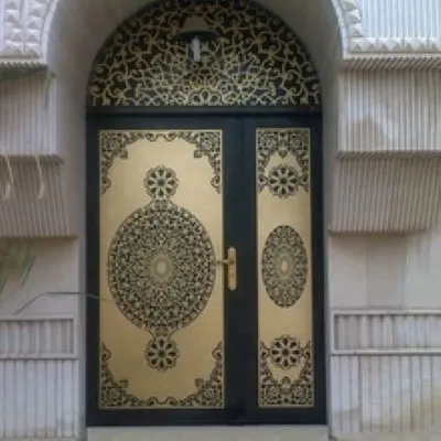 هذا النوع من الأبواب المعدنية يعكس ذوقًا رفيعًا ويضيف قيمة كبيرة إلى واجهة المبنى، سواء كان فيلا أو مدخلاً رئيسياً لعمارة سكنية.
